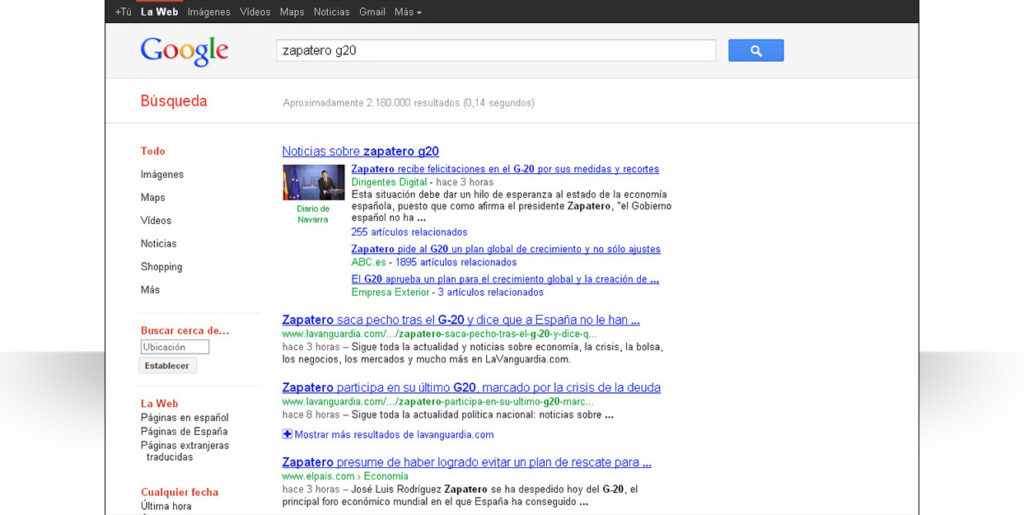 Así es como, por ejemplo, si en Google.com uno realiza una búsqueda para la frase “Obama G20”, en relación con este reciente evento realizado en París: