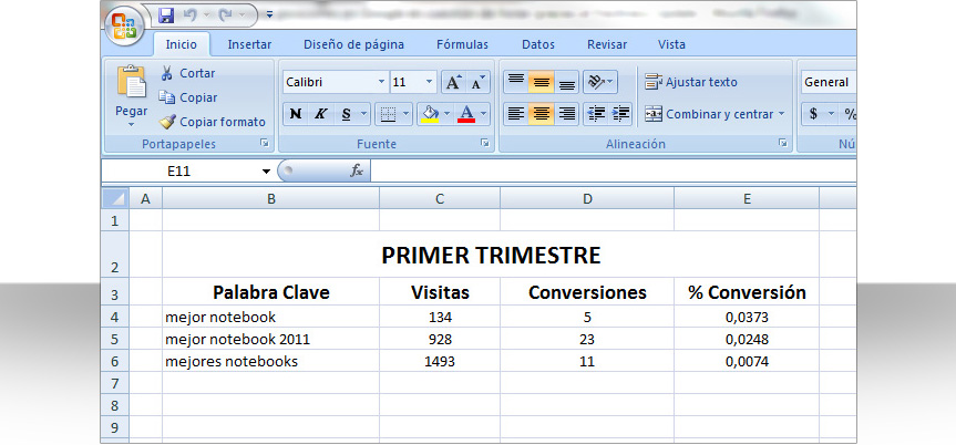 La idea de esto, es la de llevar un registro trimestral de las visitas que le brindan dichas estas frases, y cuáles de ellas le dan mayores resultados (conversiones).